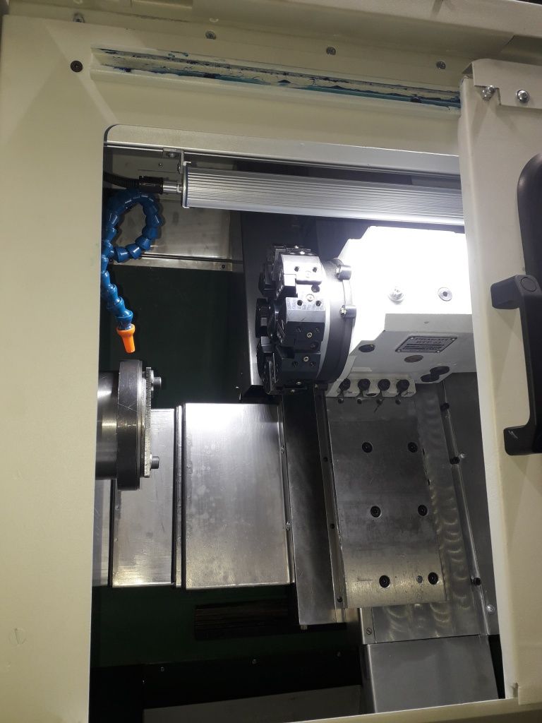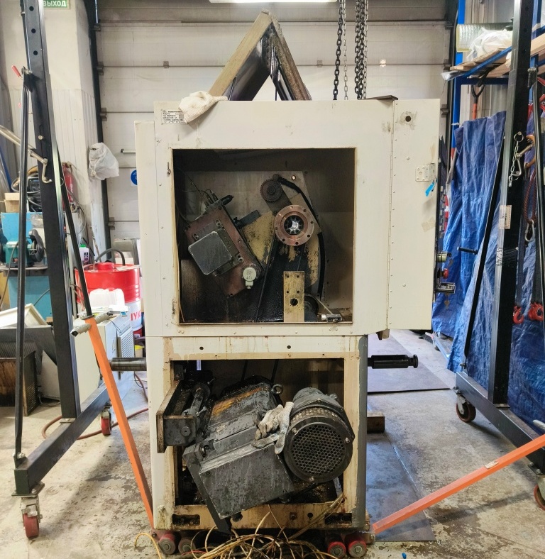 Разборка, дефектовка узлов и деталей. Полная очистка станка от стружки, смазки и загрязнений. Замена изношенных деталей, подшипников. Шлифовка и шабровка направляющих осей. Установка новых ШВП. Замена подшипников опор ШВП, подшипников шпиндельной бабки. Замена уплотнителей шпиндельной бабки. Доработка внешней обшивки станка и ограждений. Ремонт системы смазки, замена трубок и дозаторов. Замена гидроситемы на новую. Замена устаревшей инструментальной головки на современную 8-позиционную Pragati BTP-63. Покраска станка. Установка системы ЧПУ, двигателей и приводных модулей фирмы GSK. Сборка нового электрошкафа и пульта управления.